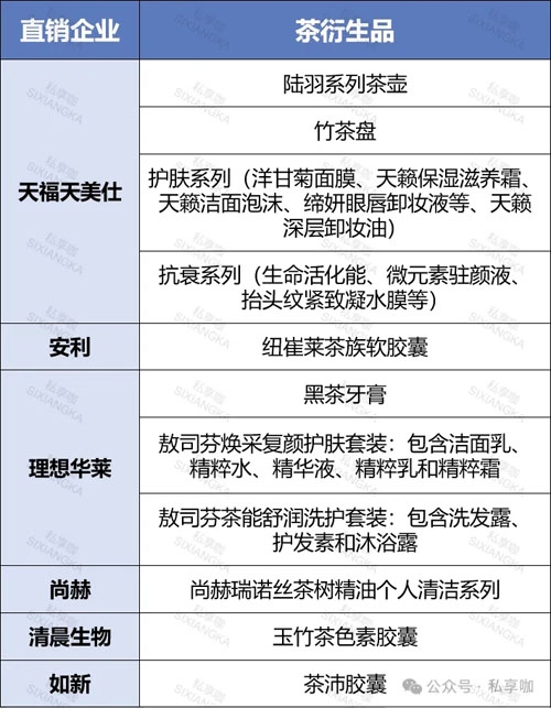 随着科技的发展,直销企业不再满足于传统的茶饮品形式,而是通过提取茶中的有效成分,利用现代工艺推出系列茶类保健食品、日用品、美妆护肤等产品。