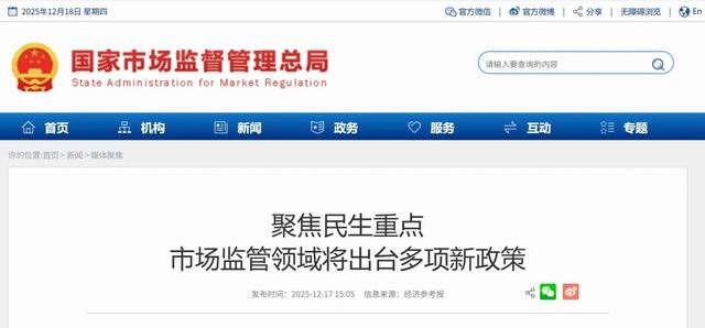 发布时间:2026-01-05 | 发布者: 东东工作室 | 浏览次数: 次12月16日,在市场监管总局四季度新闻发布会上,记者获悉,围绕规范平台经济、强化食品安全、加强反垄断反不正当竞争、加强和保障纤维制品质量安全监管等多个民生重点领域,市场监管总局将出台多项新的政策文件。